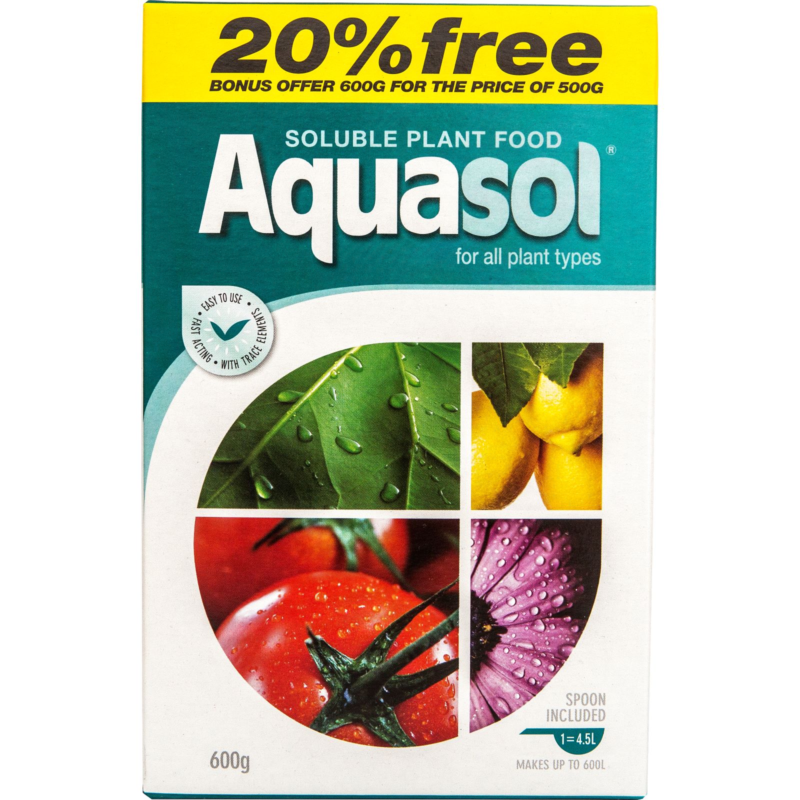 Aquasol is a balanced, fast acting, general purpose fertiliser. Suitable for growing all types of plants including flowers, vegetables, seedlings, shrubs, orchids, indoor plants and lawns. Aquasol's proven formula contains nine plant foods which are essential for healthy plant growth and development.