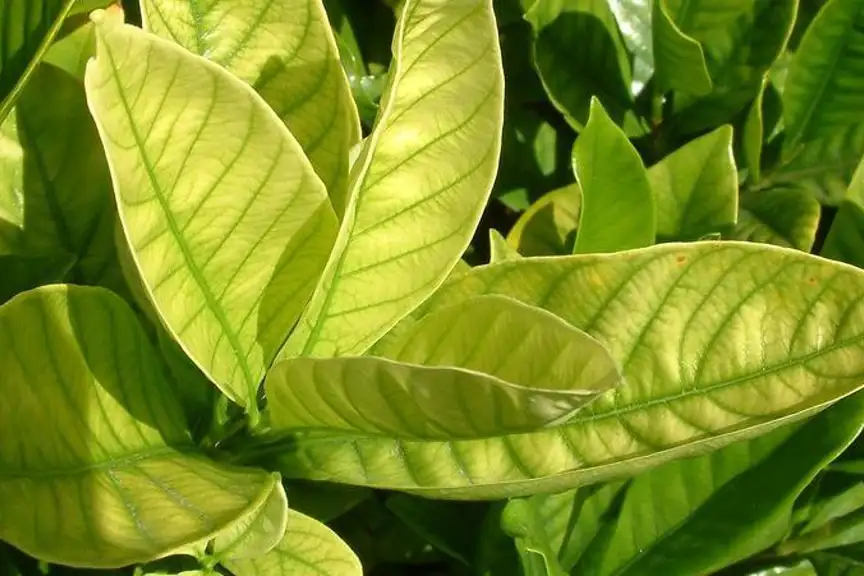 Symptoms of iron deficiency can sometimes be confused with manganese deficiency which can also lead to yellowing between the veins of the youngest leaves, particularly in spring. Similar to iron deficiency, the veins remain green. To help correct manganese deficiency, which can be common on citrus trees, apply Yates Citrus Cure Zinc & Manganese Chelate.