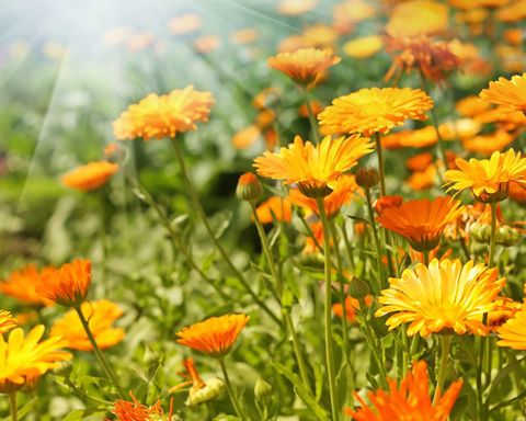 Calendula (Calendula officinalis) sometimes called 'pot marigolds' provide a bit of warm colour to the winter garden with their lovely apricot, yellow and orange blooms. Growing to around 40 – 45 cm tall, calendulas not only add a bit of bright character to the garden, they can also be used in the kitchen as well, making these flowering annuals one to plant for the cooler months.