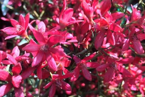 The NSW Christmas Bush (Ceratopetalum gummiferum) in an Australian native plant that beautifully heralds the festive season. In late spring, it's covered in small creamy white flowers. But it's the vibrantly coloured red or pink sepals surrounding the flowers in early summer that are the real showstoppers. There is also an attractive white variety. NSW Christmas Bush is a large shrub or small tree, with different varieties growing between 1.5 and 6 metres tall and up to 3 metres wide. They create a gorgeous focal point in the garden, attract bees, butterflies and birds, dwarf varieties are great for growing in pots and you can cut the decorative stems for a vase display.
