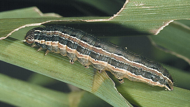 The caterpillar larvae are the damaging stage of the Lawn Armyworm lifecycle. Larvae develop through five to six stages (instars) where caterpillars grow then shed their exoskeleton - a process known as moulting.