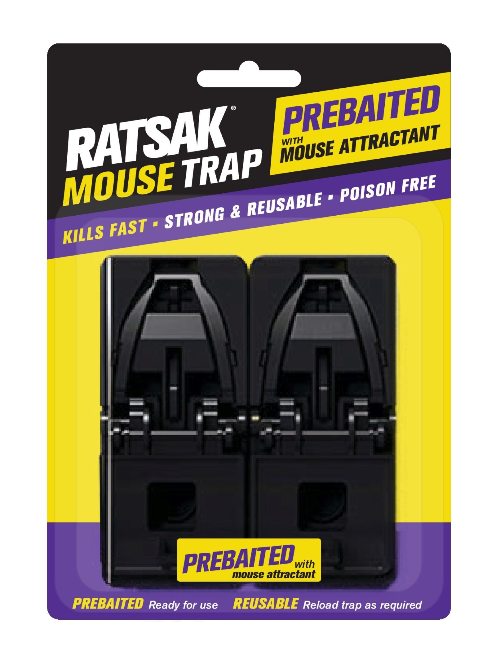 RATSAK Pre-Baited Mouse Traps come ready to use with non-toxic bait which is highly attractive to mice. Just remove the foil, set and place. This strongly designed trap provides a quick and effective solution for control of mice in and around your home.