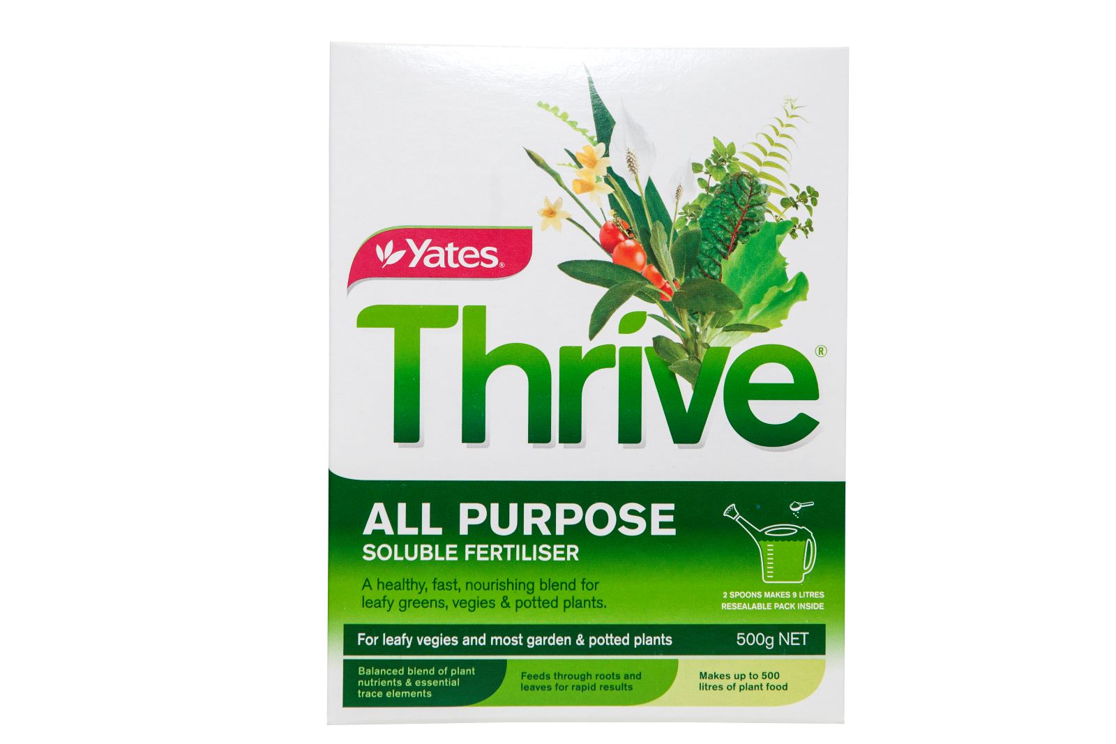 A fast acting, complete, soluble fertiliser ideal for feeding a wide range of ornamental flowers, shrubs and trees, as well as vegies, herbs and lawns. Feeds through both the foliage and the roots. Specially formulated blend of nitrogen, phosphorus, potassium and trace elements to encourage both healthy green foliage growth as well as flowers and fruiting.