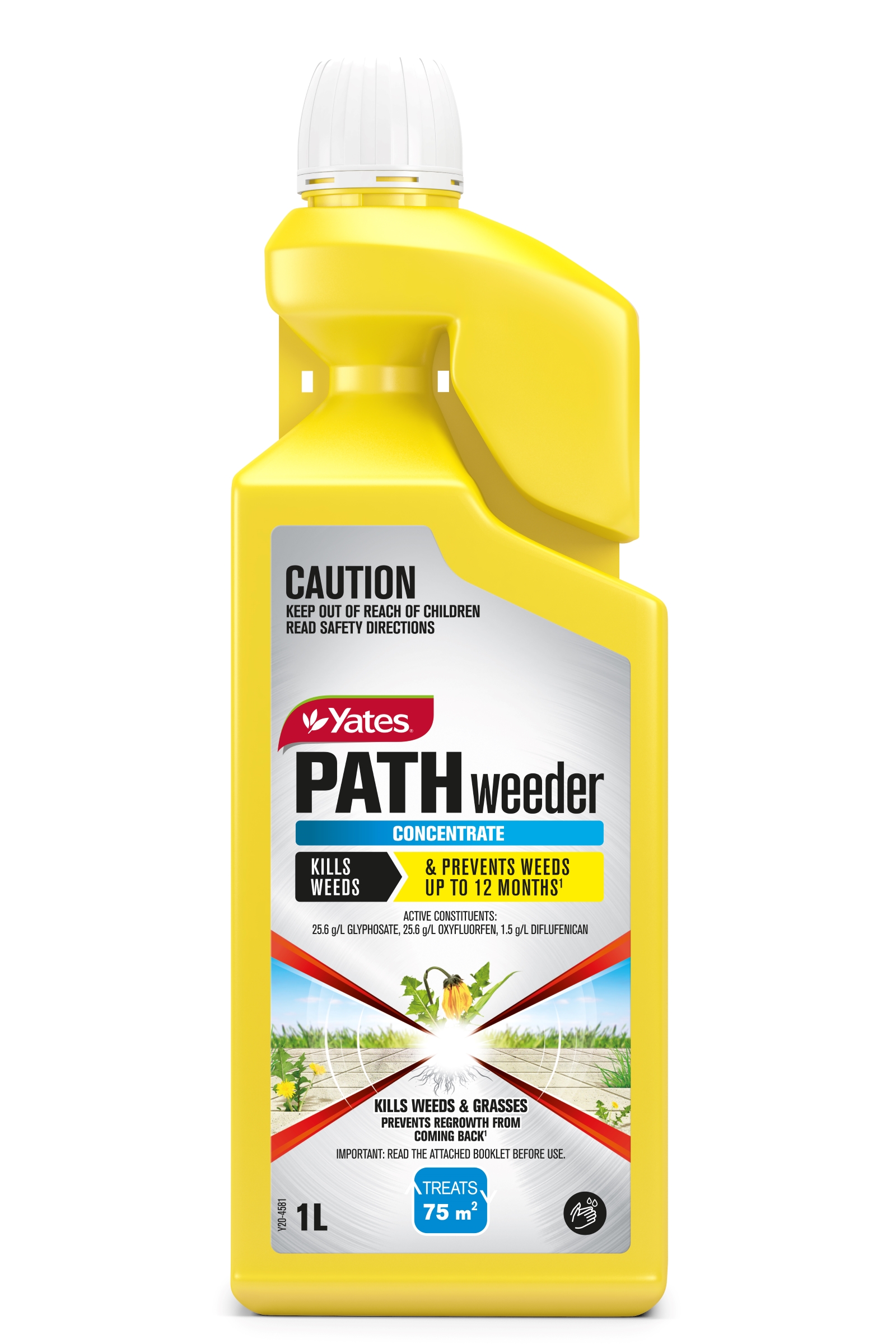 Yates Pathweeder is a total weed control solution for paths and driveways. This advanced formula is a combination of a systemic herbicide to kill existing weeds and long-lasting herbicides that prevent most new weeds germinating for up to 12 months. Yates Pathweeder can be used paths, driveways, car parks and bare soil areas (where no plants are to be grown for at least 12 months). Controls many broadleaf weeds and grasses including couch, kikuyu, oxalis, paspalum, dandelion, nutgrass, thistles, clover.