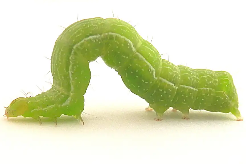Loopers are the larvae (caterpillars) of various moth species. The larvae are called 'loopers' because of the way they move. Larvae grip the surface with their forelegs and arch their back as they move their hind legs up to just behind their forelegs, creating the 'loop'. Taking a firm grip with their hind legs, they reach forward and start the process again, inching forward as they do.